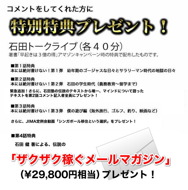 石田さんの生き方ってステキです。特典よろしくお願いします。
