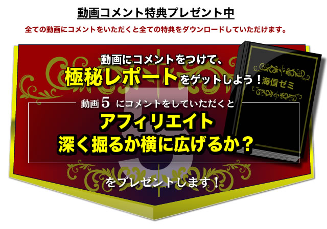 2013.9.14 死ぬ気で頑張って、ホンマに死んだヤツはおらん 2013.9.16 <サイト公開>僕が突然稼ぎだした理由 2013.9.18 KSBが力を発揮するのはこんな時 2013.9.20 海信式・キーワード選定方法! 2013.9.22 伸びる人と伸びない人の違い 2013.9.23 こんなん売れるの?という商品が爆発する 2013.9.25 東さんが伸びたわけ 2013.09.30 人間と言うのは、空っぽのコップ 2013.10.1 やっつけ仕事だからあなたは稼げない 2013.10.2 釣りの名手とド素人の違いコメント特典一覧